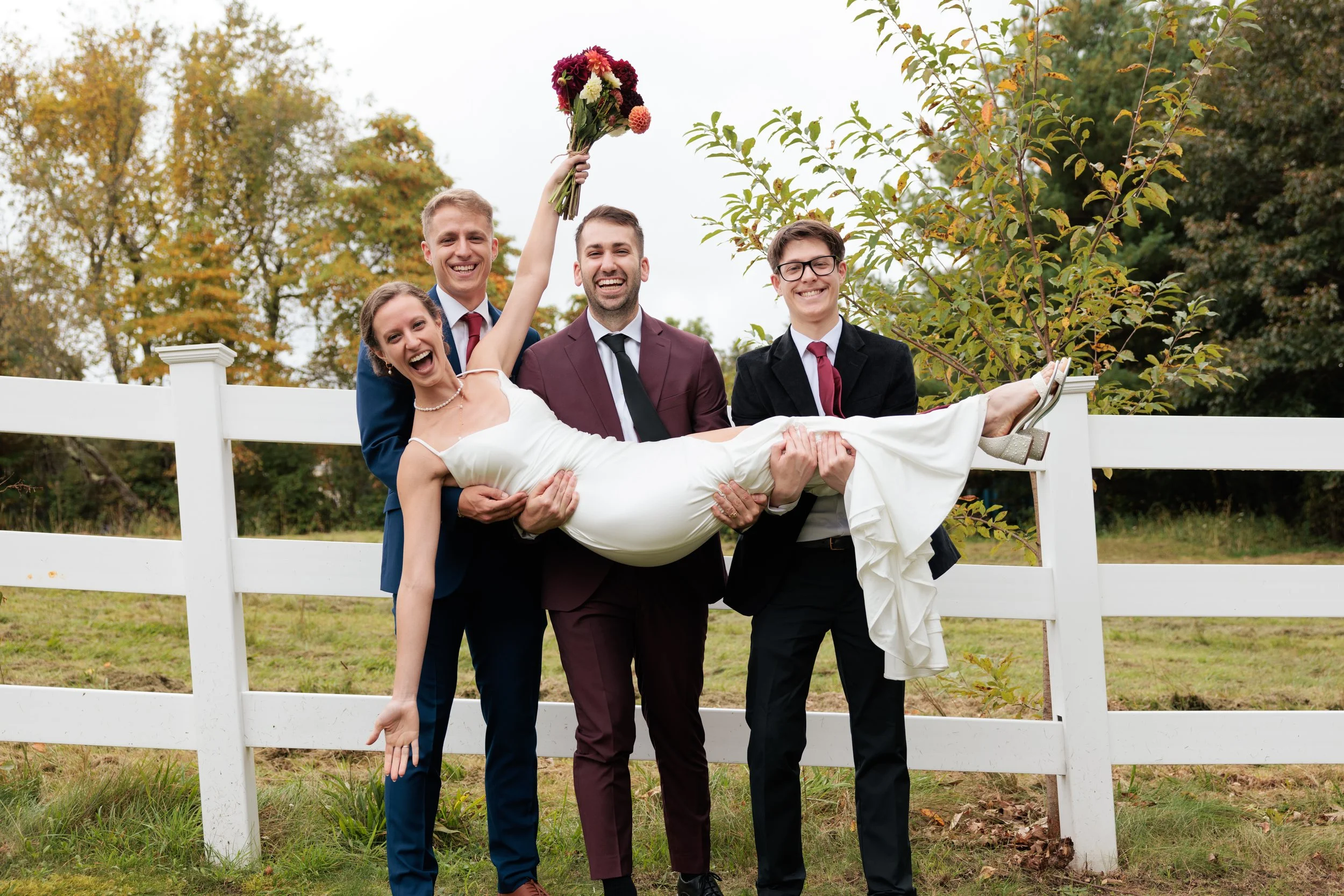 Lots of people are quite surprised to find that the sunniest days are some of the trickiest to work with! On days with full, direct sun, I’ll be looking for shade, evenly exposed areas, and creative poses to combat the sun.